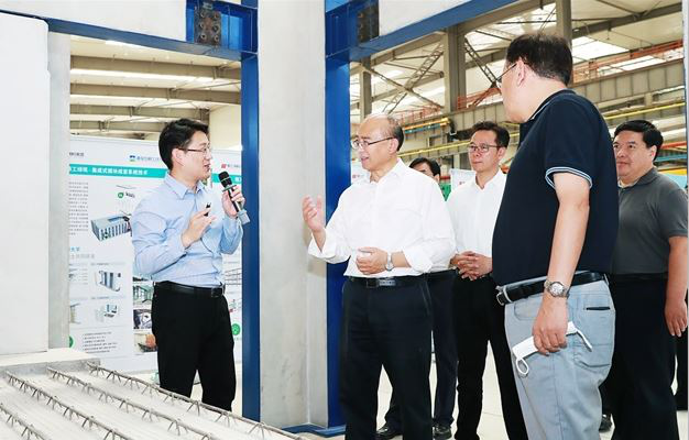 2021年6月2日上午,秦皇島市委書記朱政學(xué)一行蒞臨精工綠筑項目現(xiàn)場調(diào)研指導(dǎo),市委常委、常務(wù)副市長、北戴河新區(qū)黨工委書記劉亞洪,市委常委、秦皇島開發(fā)區(qū)黨工委書記劉學(xué)彬,撫寧區(qū)委書記張立紅等主要領(lǐng)導(dǎo)陪同調(diào)研,精工綠筑總經(jīng)理王曉春、總助樊春利、廠長丁奇亮